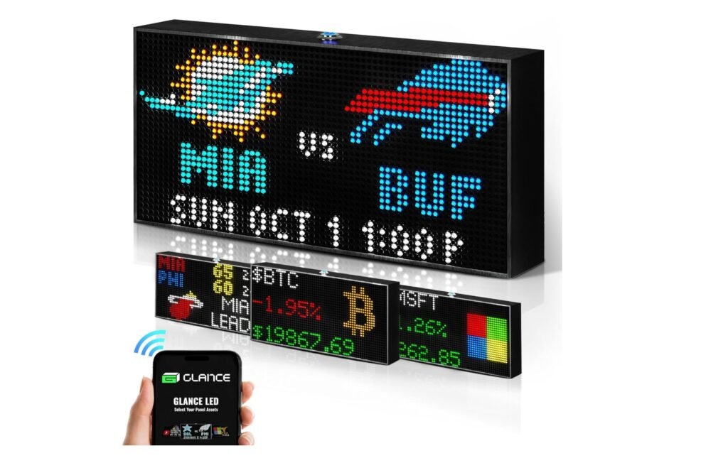 Stay instantly updated with sports scores, stock prices, crypto, weather, and news all on one customizable LED display. Set it up in minutes, control it from your phone, and personalize the feed with over 50 supported apps.