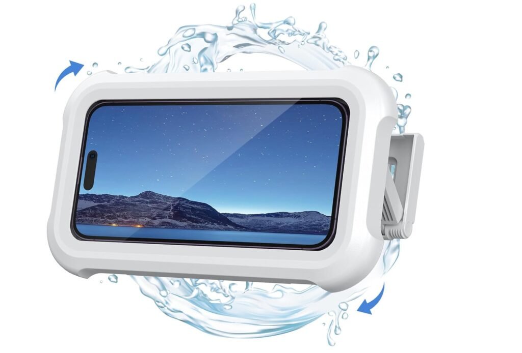 This waterproof phone holder mounts to your shower wall or bathtub and protects your phone from splashes and steam. It rotates 480° for adjustable viewing angles, supports touch interaction through the screen, and fits most 4–7″ phones even with thick cases. Comes with strong adhesive mounts for easy, drill-free installation.