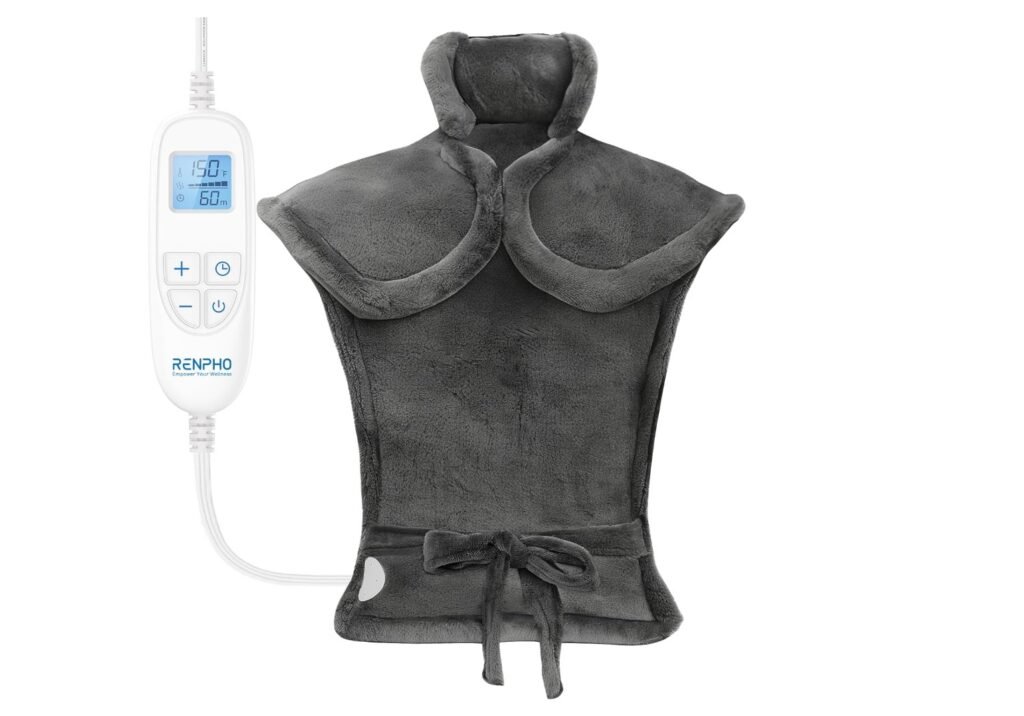 A 24″x33″ heating pad designed to relieve pain in the back, neck, and shoulders with six heat levels and three timer settings. The weighted edges make it a snug fit, while the soft, machine-washable fabric adds comfort.
