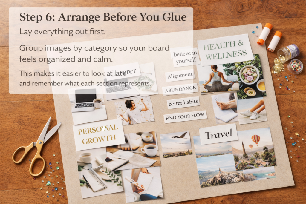 This keeps your vision board from feeling like random pretty pictures. It becomes a clear map of where you’re headed.
